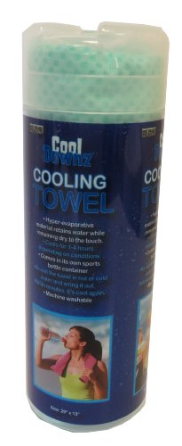 When wet, the towel becomes considerably cooler than the outside air, thereby providing cooling relief
