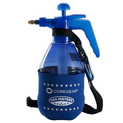 1.5 Liter Bottle. Holds 40 ounces at fill line. Includes "koozie" styled Neoprene Chill Sleeve to keep the water cold for twice as long! Cooling mist causes air temperature to drop 10-30 degrees F Brass nozzle adjusts from fine mist to stream Lightweight and portable. Lanyard and Belt Clip included for easy carrying. Has dozens of uses.